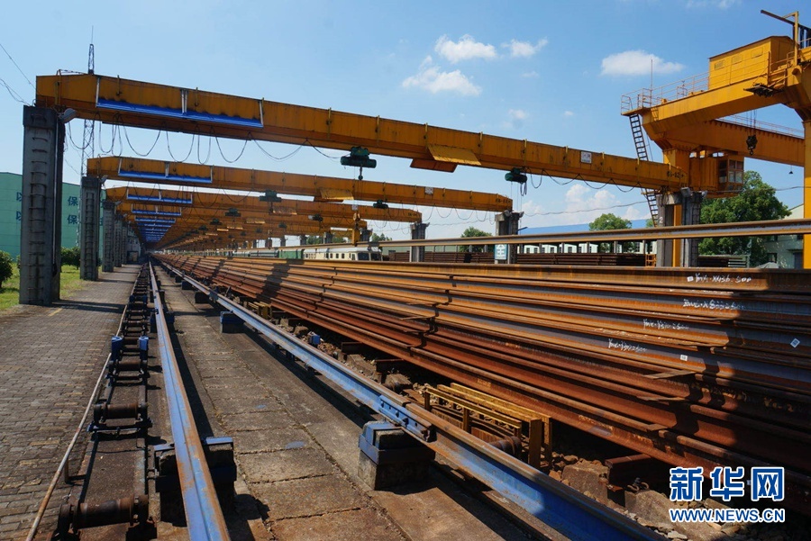 8月17日,在向塘長(zhǎng)軌基地,焊接好的一根根百米長(zhǎng)高鐵鋼軌正在吊裝。新華網(wǎng)記者劉瓊 攝