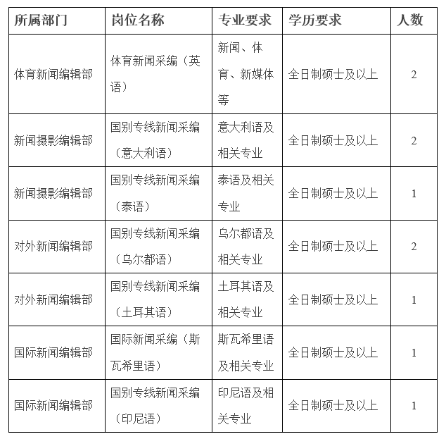 新華社面向社會公開招聘留學人員,現(xiàn)就相關(guān)事項公告如下: