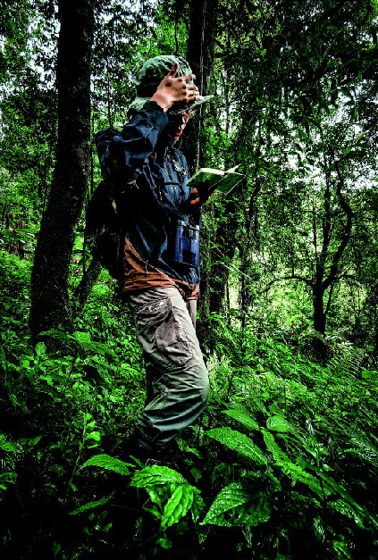 就是在這次調(diào)查過程中,飯飯那雙登山靴“本來好端端的一部分被永遠(yuǎn)留在了山上”。一路手腳并用、氣喘吁吁,還要時刻提防被樹枝啪啪打臉,飯飯覺得山里“完全沒有路”;讓她驚嘆的是,身邊的祝常悅居然可以在密林深處走得“一陣清風(fēng)如履平地”,還有精力隨手拍下一條盤亙在落葉上的竹葉青蛇。飯飯還沒想明白,常悅站長這種“地上無路,腳下有路”的境界是怎么“修煉”出來的。