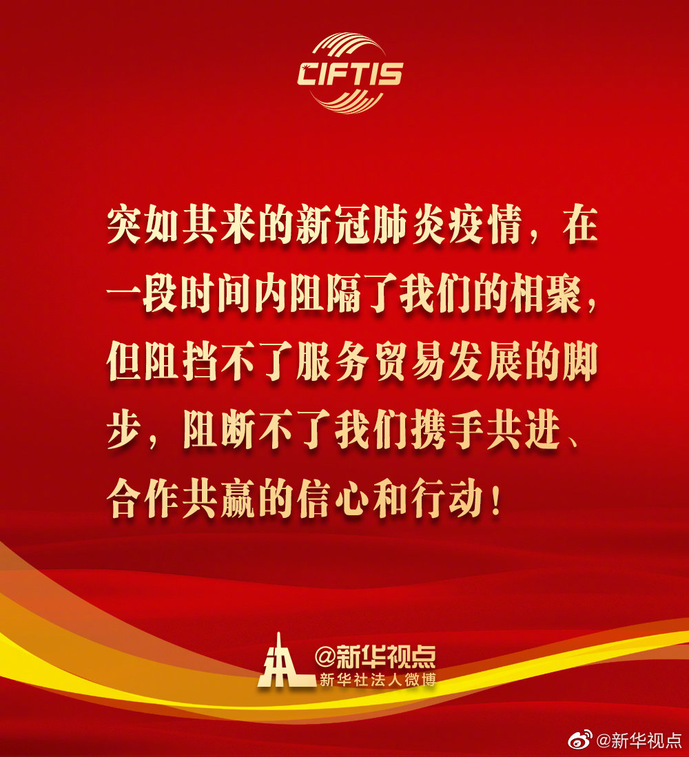 國家主席習近平在2020年中國國際服務貿易交易會全球服務貿易峰會上的視頻致辭金句