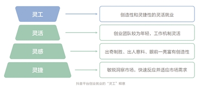 在業(yè)內(nèi)看來,抖音平臺創(chuàng)造的就業(yè)機(jī)會是典型的“靈工”,即強(qiáng)調(diào)即興發(fā)揮、創(chuàng)造力和靈捷響應(yīng)的靈活就業(yè)。這使抖音平臺就業(yè)體系有著強(qiáng)大的生命力和吸引力,吸引大量人才入駐,并有力帶動科技創(chuàng)新、產(chǎn)業(yè)發(fā)展和經(jīng)濟(jì)增長。