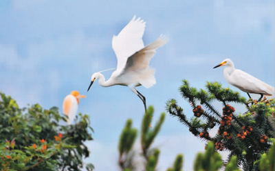 湖南省邵陽(yáng)市洞口縣羅溪瑤族鄉(xiāng)鐵山村,成群的鷺鳥(niǎo)在飛舞歡歌。滕治中攝(人民視覺(jué))