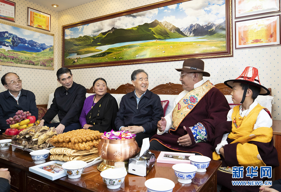 中共中央政治局常委、全國政協(xié)主席汪洋近日在青海調(diào)研。這是9月14日,汪洋在果洛藏族自治州瑪沁縣大武鎮(zhèn)久美家園易地扶貧搬遷安置點牧民家中看望。 新華社記者 黃敬文 攝
