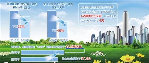 與此同時(shí),2019年京津冀區(qū)域“2+26”城市生產(chǎn)總值達(dá)到14.2萬億元,比2016年增長了17.2%。