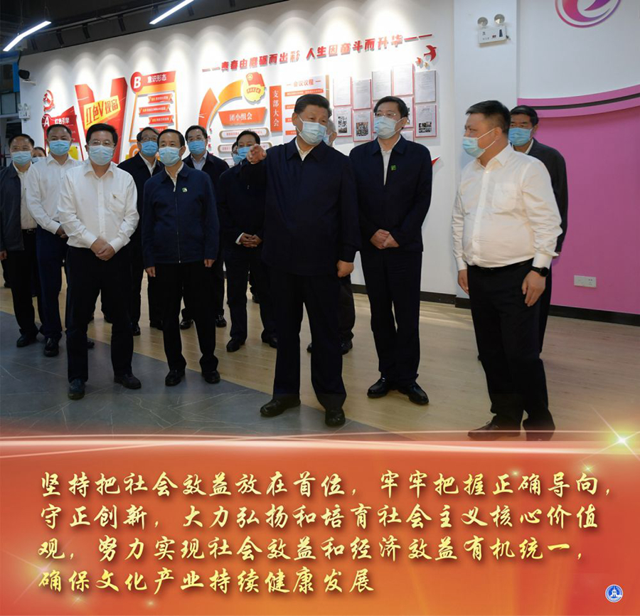 離開(kāi)園區(qū)時(shí),習(xí)近平總書(shū)記強(qiáng)調(diào):“文化產(chǎn)業(yè)既有意識(shí)形態(tài)屬性,又有市場(chǎng)屬性,但意識(shí)形態(tài)屬性是本質(zhì)屬性。剛才我看到你們墻上掛著一幅字‘導(dǎo)向金不換’,也可以引用來(lái)說(shuō)明這樣一個(gè)道理。一定要牢牢把握正確導(dǎo)向,堅(jiān)持守正創(chuàng)新,確保文化產(chǎn)業(yè)持續(xù)健康發(fā)展?!?/p>