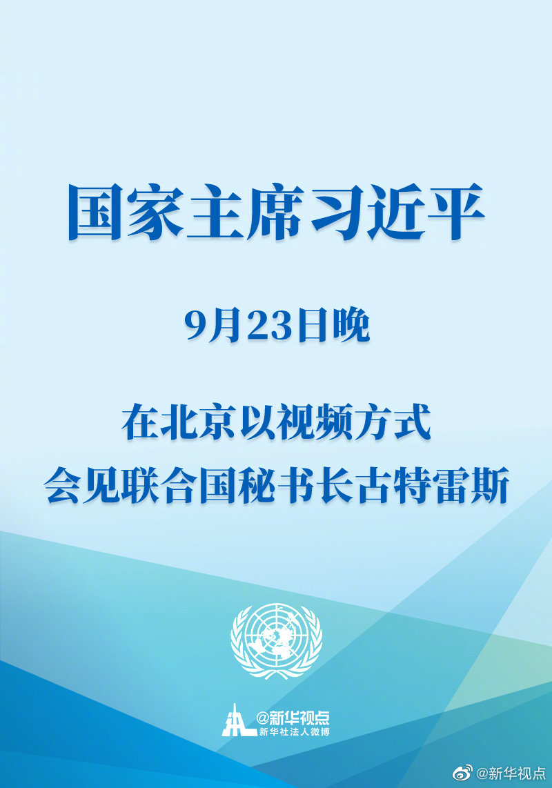 國(guó)家主席習(xí)近平23日晚在北京以視頻方式會(huì)見(jiàn)聯(lián)合國(guó)秘書長(zhǎng)古特雷斯。 ????