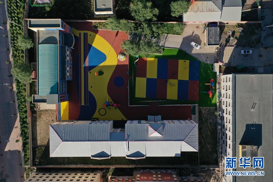 俯瞰拉加鎮(zhèn)中心幼兒園。(新華網(wǎng)潘彬彬 攝)