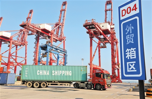 近日,運(yùn)輸車輛在江蘇連云港集裝箱碼頭轉(zhuǎn)運(yùn)集裝箱準(zhǔn)備裝船出口國(guó)外。 海關(guān)總署發(fā)布的數(shù)據(jù)顯示,今年前8個(gè)月,我國(guó)貨物貿(mào)易進(jìn)出口總值20.05萬(wàn)億元,同比下降0.6%,降幅持續(xù)收窄,接近“轉(zhuǎn)正”。