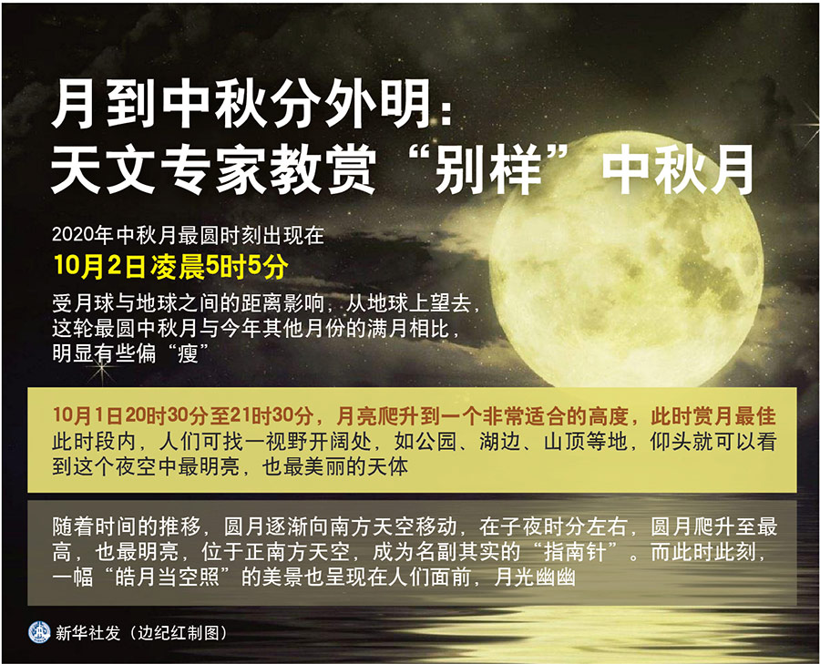 今年中秋月最圓時刻出現(xiàn)在10月2日凌晨5時5分。受月球與地球之間的距離影響,從地球上望去,這輪最圓中秋月與今年其他月份的滿月相比,明顯有些偏“瘦”。