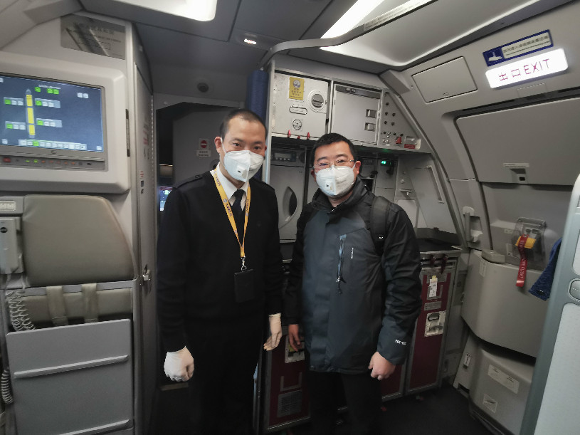 四川廣播電視臺 張藝2020年2月2日采訪“英雄機(jī)長“劉傳建并合影,當(dāng)天英雄機(jī)長送戰(zhàn)疫英雄前往武漢
