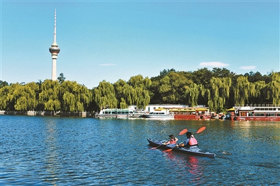 秋高氣爽、天藍水清,玉淵潭公園南側(cè)的八一湖碧波蕩漾,五彩的皮劃艇在水中游弋……從9月份開始,八一湖內(nèi)2萬平方米的水域正式成為北京市天然河湖水域,并向市民開放水上運動試點,市民可體驗和學習皮劃艇運動。實際上,“十三五”以來,越來越多的北京城市河湖已經(jīng)從之前的“閑人勿進”變成了市民的親水樂園。