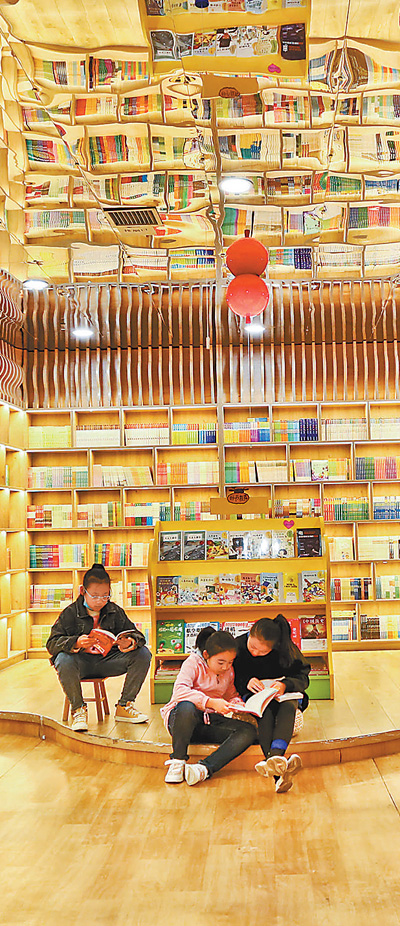 10月5日,小朋友在甘肅張掖錦華書(shū)城里讀書(shū)。王 將攝(人民視覺(jué))