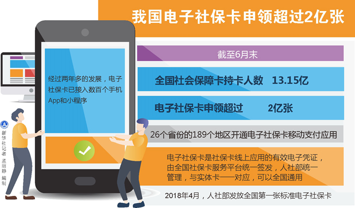 新華社北京10月6日電(記者姜琳)人力資源和社會(huì)保障部近日發(fā)布的數(shù)據(jù)顯示,截至6月末,全國(guó)社會(huì)保障卡持卡人數(shù)13.15億,電子社保卡申領(lǐng)超過(guò)2億張,26個(gè)省份的189個(gè)地區(qū)開通電子社保卡移動(dòng)支付應(yīng)用。