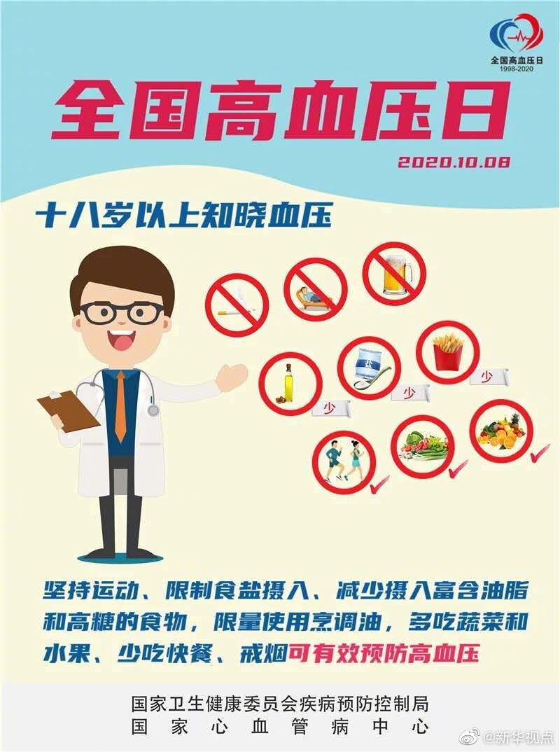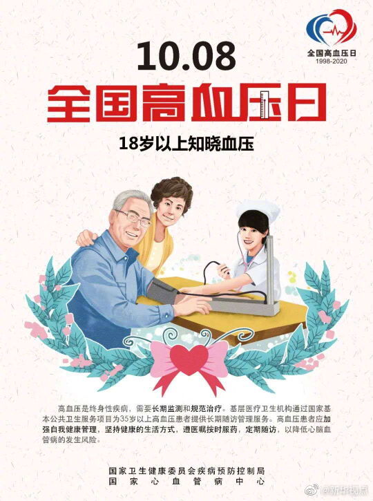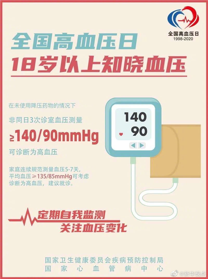 10月8日是全國高血壓日,今年的主題是“18歲以上知曉血壓”。根據(jù)國家心血管病中心的數(shù)據(jù),我國已有2.7億高血壓患者,因心血管病導致的死亡占國民總死亡的40%以上,約70%的腦卒中死亡、約50%心肌梗死與高血壓密切相關(guān)。國家心血管病中心提醒,高血壓并非老年人“專屬”,年輕化成為高血壓的發(fā)展趨勢。18歲及以上人群就應(yīng)定期自我監(jiān)測血壓,至少每年測量一次。在未使用降壓藥物的情況下,非同日3次血壓測量的收縮壓≥140mmHg和(或)舒張壓≥90mmHg,可診斷為高血壓。(記者屈婷)