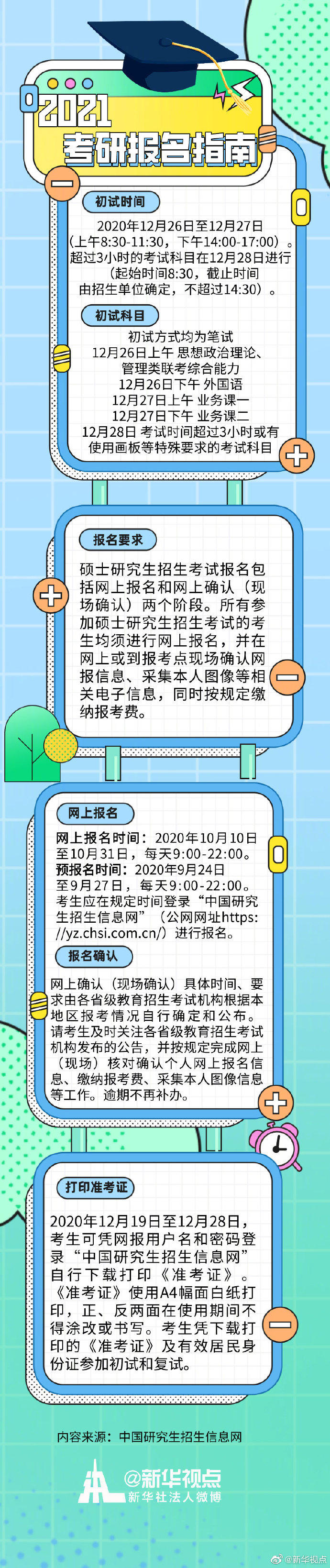 今天起至10月31日,2021年全國(guó)碩士研究生招生考試開始正式報(bào)名。考生們可在每天9:00至22:00登錄“全國(guó)碩士研究生招生考試網(wǎng)上報(bào)名平臺(tái)”進(jìn)行報(bào)名,這份考試和報(bào)名安排?轉(zhuǎn)給需要的TA吧! ?????
