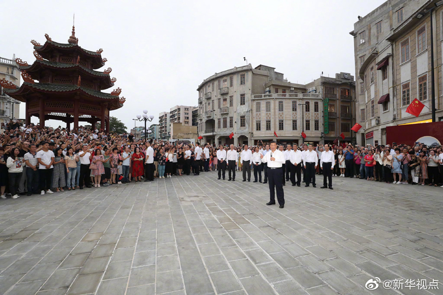 在廣東省汕頭市考察的習(xí)近平總書記步行察看開埠區(qū)街區(qū)人文歷史風(fēng)貌,同熱情圍攏過來的市民群眾親切交流。習(xí)近平強(qiáng)調(diào),我此行到廣東考察,就是進(jìn)一步向國內(nèi)外宣示,中國共產(chǎn)黨領(lǐng)導(dǎo)中國人民將繼續(xù)堅(jiān)定不移走改革開放的道路,奮發(fā)有為推進(jìn)社會主義現(xiàn)代化強(qiáng)國建設(shè),鍥而不舍努力實(shí)現(xiàn)中華民族偉大復(fù)興的中國夢。父老鄉(xiāng)親們,讓我們攜手努力,共同奮斗?。ㄎ淖钟浾撸簭垥运?、朱基釵 攝影記者:鞠鵬、王曄)
