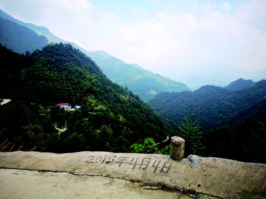曉天鎮(zhèn)通往山上蘇平村珓子石組的水泥路上刻著修路完工的日期(8月29日攝)。本報(bào)記者蔣彤?dāng)z