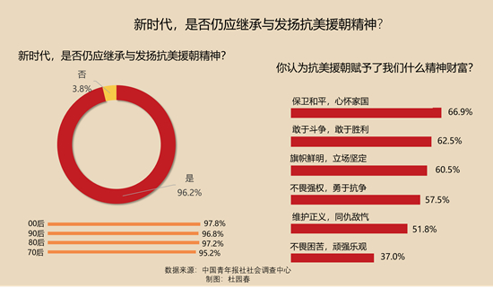 96.2%的受訪者確認(rèn),在新的時(shí)代背景下,我們?nèi)詰?yīng)繼承與發(fā)揚(yáng)抗美援朝精神。