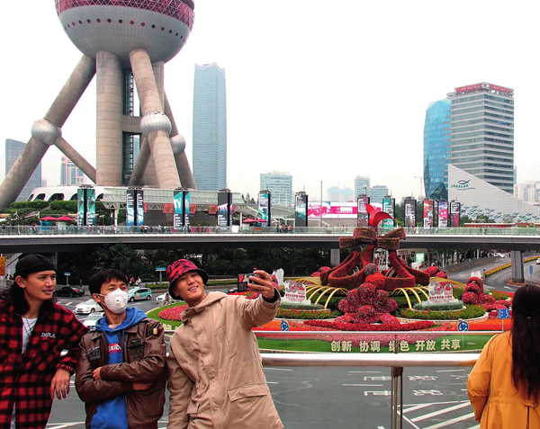 11月1日,游客在上海浦東陸家嘴環(huán)島的天橋上拍照 陳飛攝