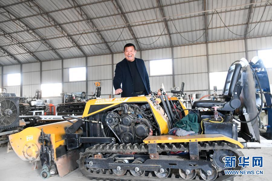 燒鍋村黨總支書記戴振武在展示他研發(fā)的能夠完成除草、施肥、灑藥等工作的綜合山地管理機,取名“果榛?!保?1月9日攝)。新華社記者 顏麟蘊 攝