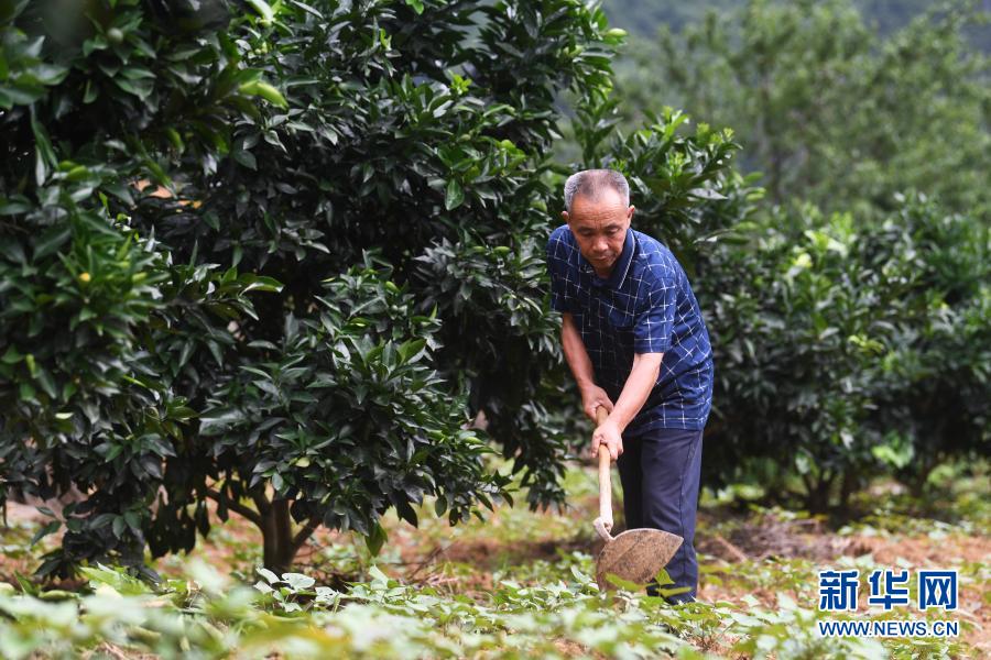 毛相林在地里勞作(2020年7月3日攝)。