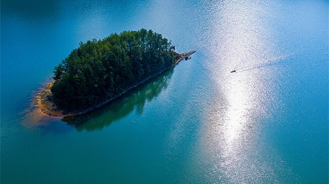 下莊村通往外界的公路(2020年7月3日攝,無人機照片)。