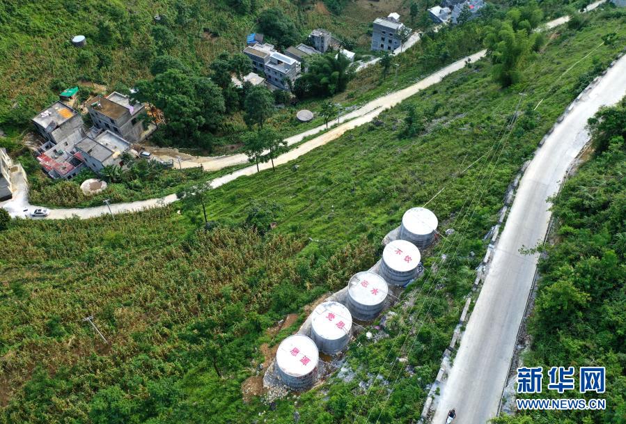 這是廣西都安瑤族自治縣永安鎮(zhèn)安蘭村新建的水柜(7月22日攝,無(wú)人機(jī)照片)。新華社記者 周華 攝