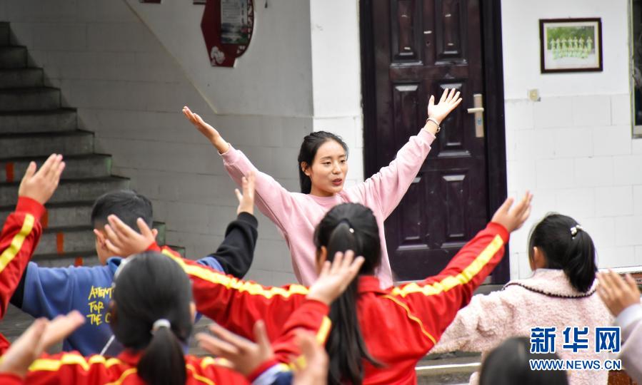 11月18日,在河南省洛陽市嵩縣德亭鎮(zhèn)酒店小學(xué),王予川帶學(xué)生做韻律操。新華社記者 韓朝陽 攝