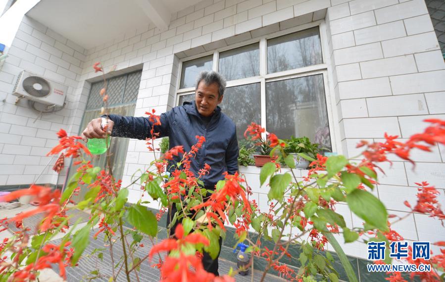 11月17日,范三林在自家院子澆花。新華社記者 范世輝 攝