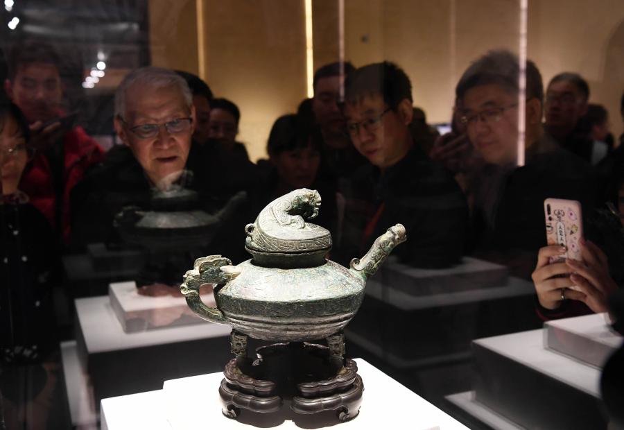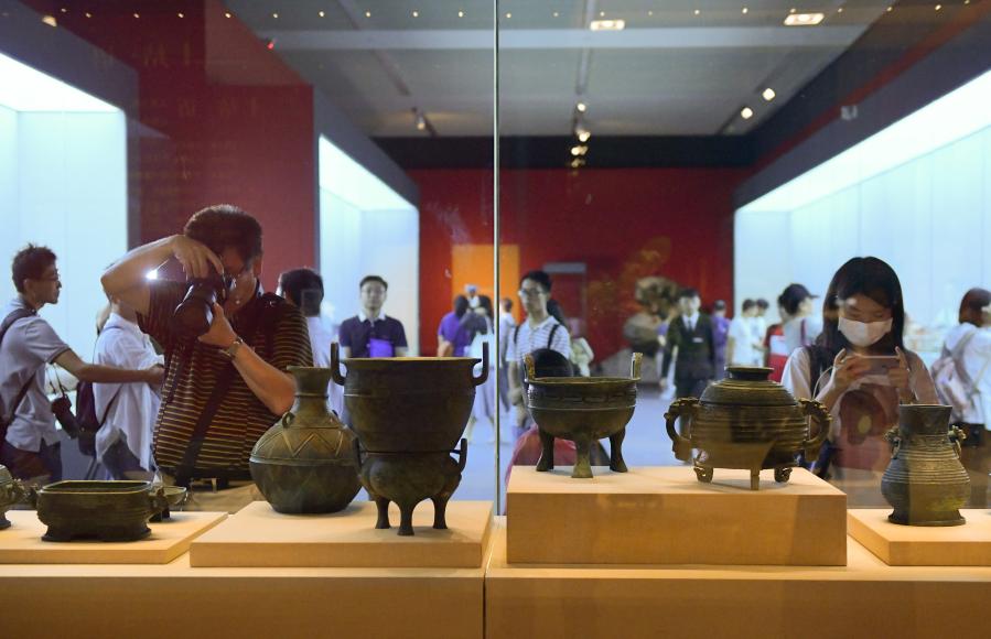 觀眾參觀“回歸之路——新中國成立70周年流失文物回歸成果展”(新華社記者李賀 攝)