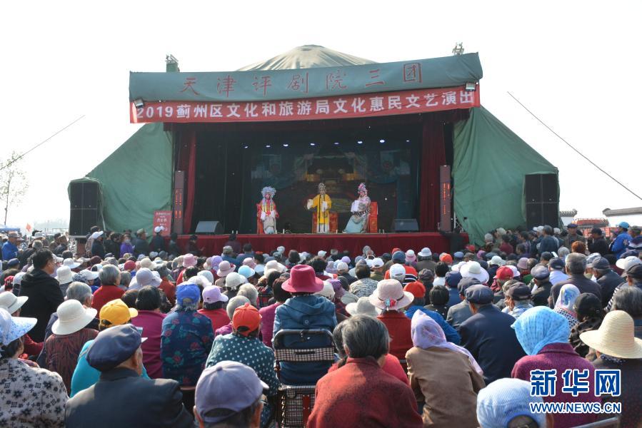 天津評(píng)劇院三團(tuán)在天津市薊州區(qū)演出評(píng)劇《打金枝》(2019年4月15日攝)。新華社發(fā)