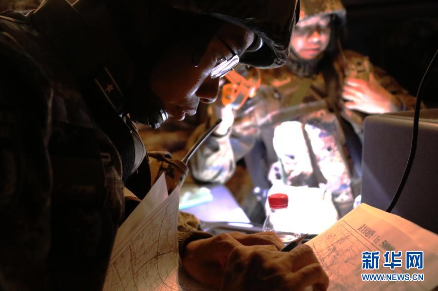 汽車運(yùn)輸專業(yè)參賽隊(duì)員在野外進(jìn)行圖上方位判定(11月30日攝)。新華社發(fā)(呂冀周 攝)