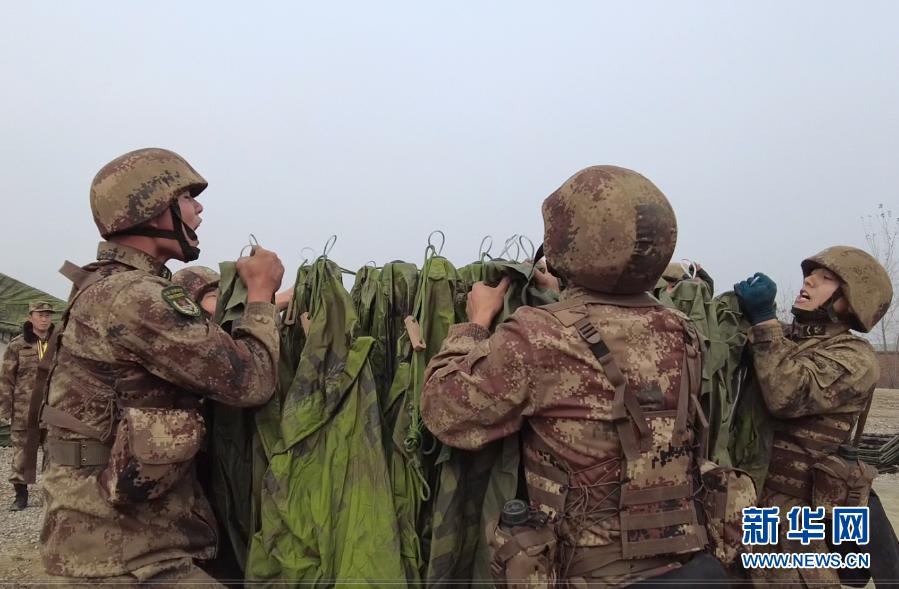 宿營(yíng)保障隊(duì)參賽隊(duì)員在搭設(shè)野戰(zhàn)宿營(yíng)帳篷(11月30日視頻截圖)。新華社發(fā)(呂冀周 攝)