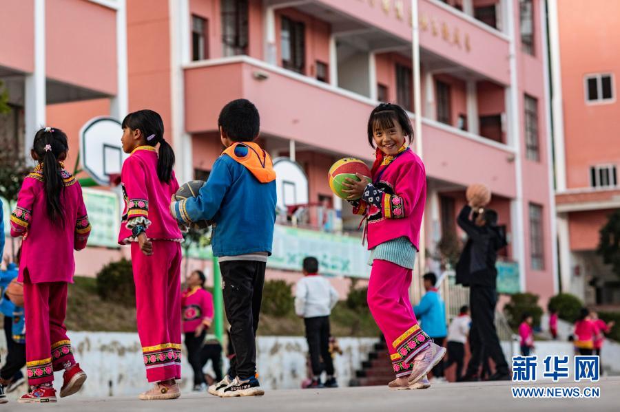 云南省楚雄市子午鎮(zhèn)挖銅村挖銅小學(xué)的孩子在操場(chǎng)玩耍(11月30日攝)。新華社記者 江文耀 攝