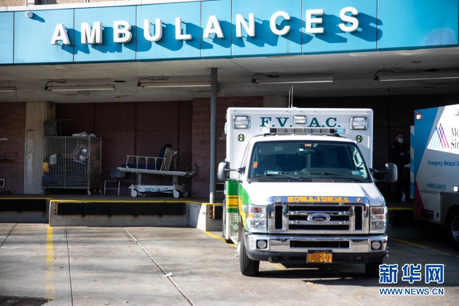 12月3日,在美國紐約,救護(hù)車停在一家醫(yī)院的急診室外。新華社發(fā)(郭克 攝)