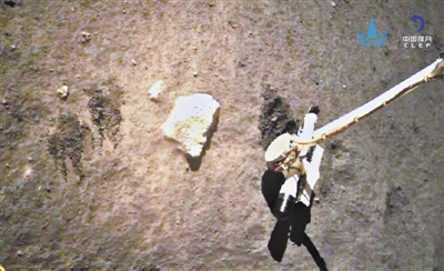 在月面超過100攝氏度的高溫考驗(yàn)下,它克服了測控、光照、電源等方面的條件約束,舒展長臂,高高舉起了挖土鏟……