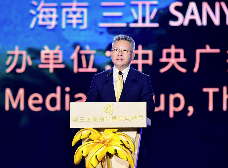 光影傳情,全球電影人共相聚。12月5日,由中央廣播電視總臺(tái)與海南省人民政府共同主辦的第三屆海南島國(guó)際電影節(jié)在三亞海棠灣開(kāi)幕。中宣部副部長(zhǎng)、中央廣播電視總臺(tái)臺(tái)長(zhǎng)、第三屆海南島國(guó)際電影節(jié)組委會(huì)主席慎海雄,中共海南省委書記、海南省人大常委會(huì)黨組書記沈曉明出席開(kāi)幕式并致辭。慎海雄宣布第三屆海南島國(guó)際電影節(jié)開(kāi)幕。