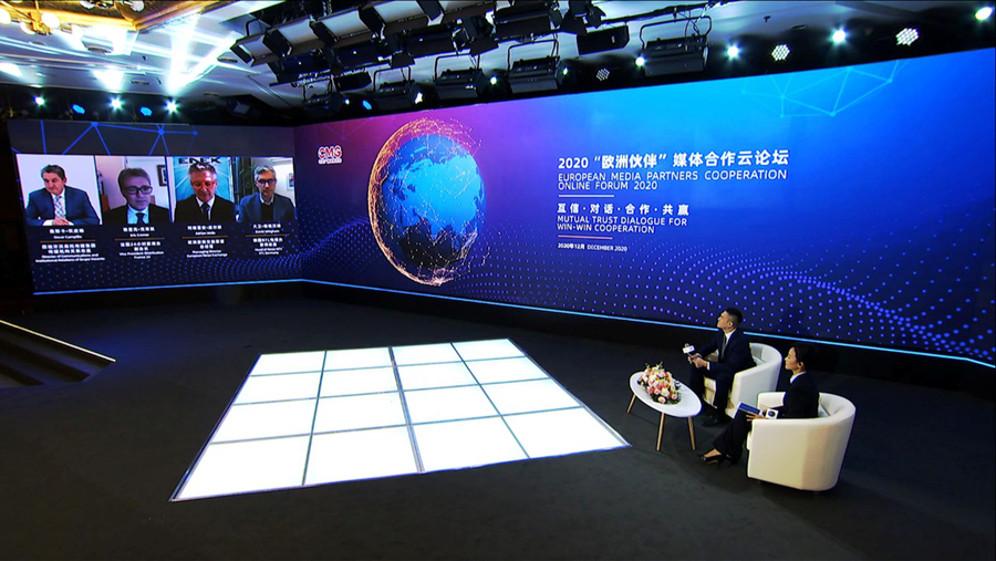 12月10日,中央廣播電視總臺以視頻連線的方式舉辦2020“歐洲伙伴”媒體合作云論壇。中宣部副部長、中央廣播電視總臺臺長、總編輯慎海雄出席并發(fā)表致辭,強調(diào)堅持多邊主義,加強對話交流,構建中歐媒體伙伴關系。中央廣播電視總臺相關代表與來自歐洲地區(qū)16個國家25家媒體機構的28名與會代表圍繞“互信·對話·合作·共贏”主題,相聚云端展開對話,共同發(fā)布《加強媒體合作聯(lián)合聲明》,積極推動中歐媒體加強合作、同舟共濟、團結(jié)抗疫,提振國際社會信心。