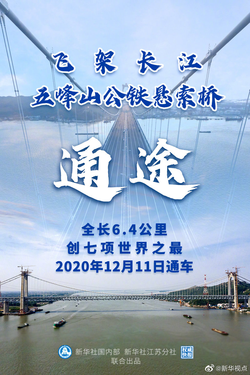 11日上午,世界上最大的公鐵兩用懸索橋——連接江蘇揚(yáng)州和鎮(zhèn)江的五峰山長江大橋通車?yán)?!大橋全長6.4公里,創(chuàng)七項(xiàng)世界之最。(記者:楊紹功、吳新生 設(shè)計(jì):張惠慧、張晨光)?