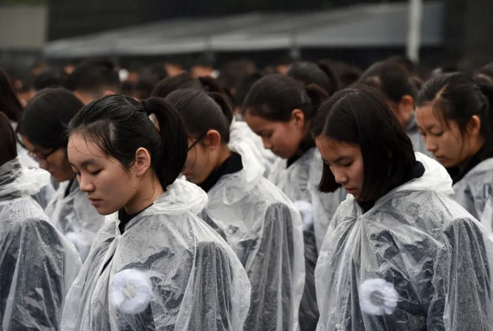↑2016年12月13日,學(xué)生代表在南京大屠殺死難者國家公祭儀式上默哀。新華社發(fā)