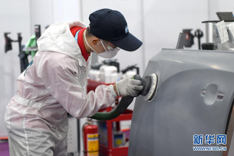 選手在汽車噴漆項(xiàng)目比賽中(12月11日攝)。新華社記者 盧漢欣 攝
