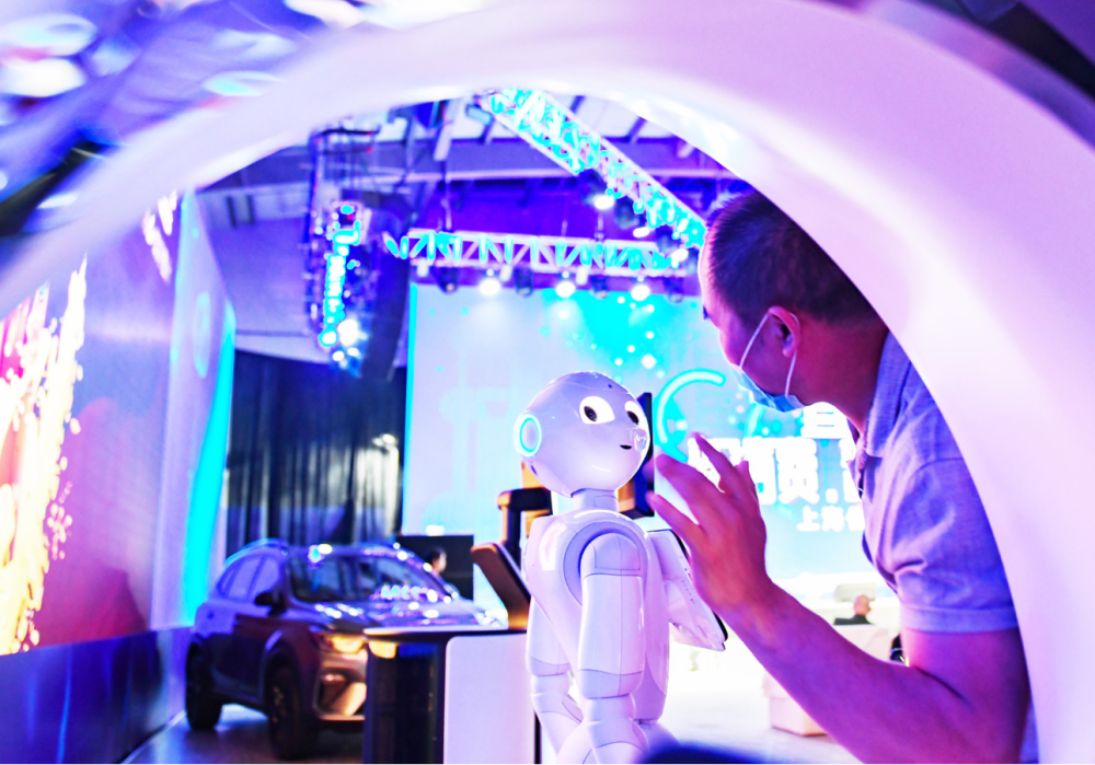 5月17日,上海信息消費(fèi)云峰匯現(xiàn)場的智能機(jī)器人