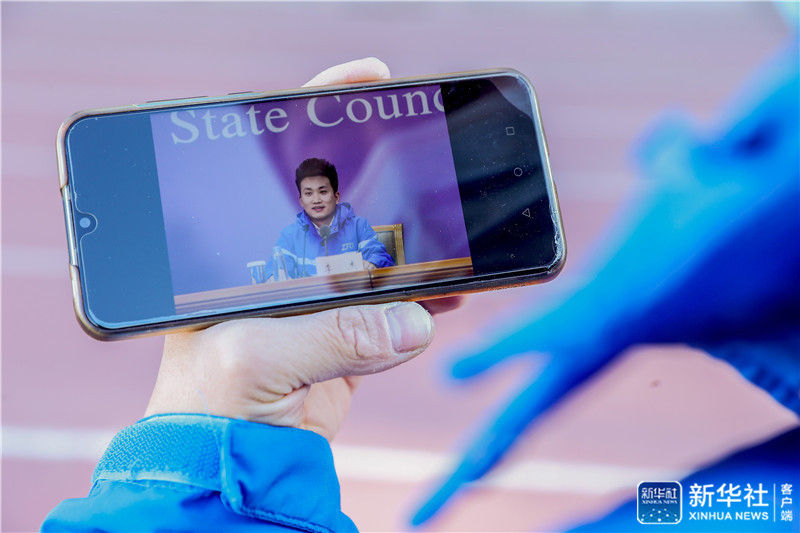 12月16日,李杰在展示他在參加國務院聯(lián)防聯(lián)控機制新聞發(fā)布會時的照片。新華社記者 張玉薇 攝