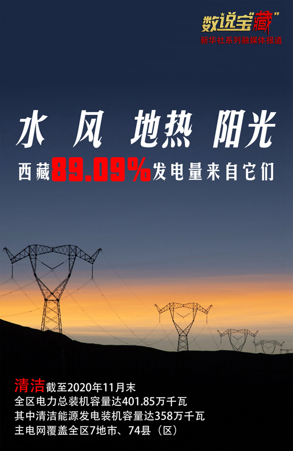 西藏自治區(qū)發(fā)展改革委的數(shù)據(jù)顯示,近年來(lái)西藏發(fā)電能力大幅增長(zhǎng),截至2020年11月末,全區(qū)電力總裝機(jī)容量達(dá)401.85萬(wàn)千瓦,其中清潔能源板塊增長(zhǎng)迅速,同期水電、風(fēng)電、地?zé)嵋约疤?yáng)能光伏發(fā)電裝機(jī)容量達(dá)358萬(wàn)千瓦,清潔能源在發(fā)電裝機(jī)容量中的占比達(dá)89.09%。