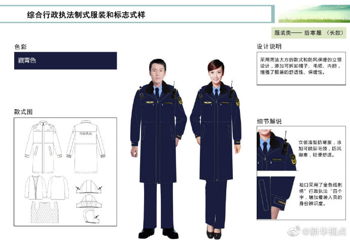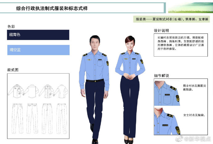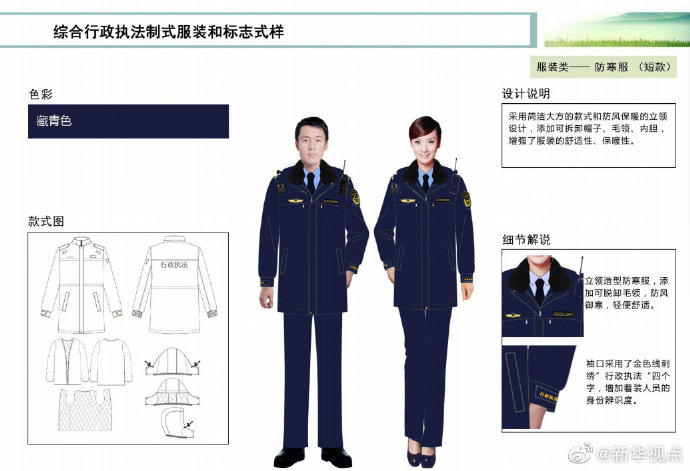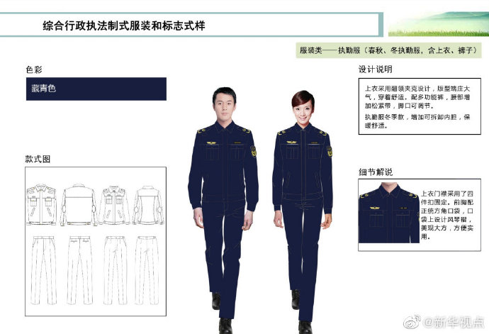 【這些綜合行政執(zhí)法部門將統(tǒng)一著裝,你喜歡嗎?】財政部、司法部日前印發(fā)《綜合行政執(zhí)法制式服裝和標志管理辦法》,明確加強生態(tài)環(huán)境保護、交通運輸、農(nóng)業(yè)、文化市場、應(yīng)急管理、市場監(jiān)管等綜合行政執(zhí)法制式服裝和標志管理。這6支綜合行政執(zhí)法隊伍將統(tǒng)一著裝,不同執(zhí)法隊伍通過標志中的名稱和圖案加以區(qū)分,徹底解決長期以來不同執(zhí)法部門著裝五花八門的問題。來看看這些“新衣”預覽吧!(記者申鋮、白陽)