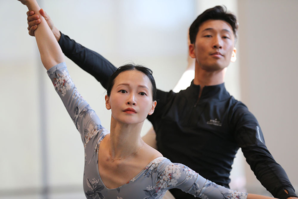 5月17日,項(xiàng)陽(左)作為主要演員參加現(xiàn)代芭蕾《家園的呼喚》連排。