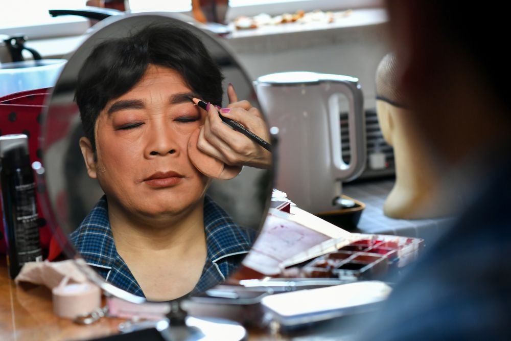 在各個(gè)舞臺(tái)間轉(zhuǎn)場(chǎng)的間隙,武凌云帶著戲劇妝容,向記者講述了一年來的生活。