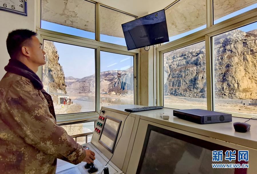 龍門水文站工作人員在纜道操作機房內(nèi)操控纜道進行流量測驗(12月27日攝,手機照片)。新華社記者 劉詩平 攝