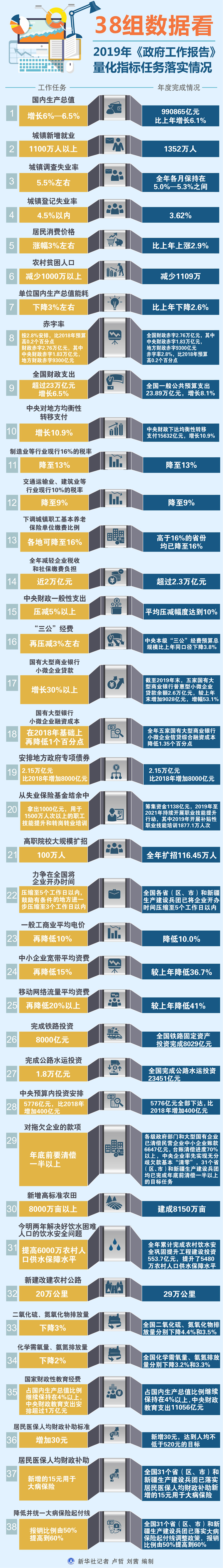 新華社北京5月19日電(記者高亢)全國兩會召開在即,國務(wù)院19日對外公布2019年《政府工作報告》量化指標(biāo)任務(wù)落實(shí)情況表,38項指標(biāo)任務(wù)均已完成。