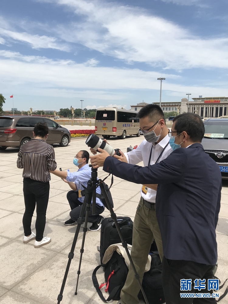 5月20日,全國(guó)政協(xié)十三屆三次會(huì)議召開新聞發(fā)布會(huì)。大會(huì)新聞發(fā)言人郭衛(wèi)民向中外媒體介紹本次大會(huì)有關(guān)情況并回答記者提問。圖為本網(wǎng)記者在人民大會(huì)堂東門外廣場(chǎng)做直播前準(zhǔn)備工作。新華網(wǎng)記者 周紅軍? 攝